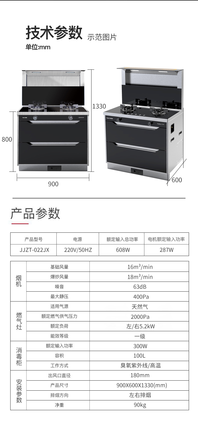 一級(jí)能效 消毒柜為一體集成灶